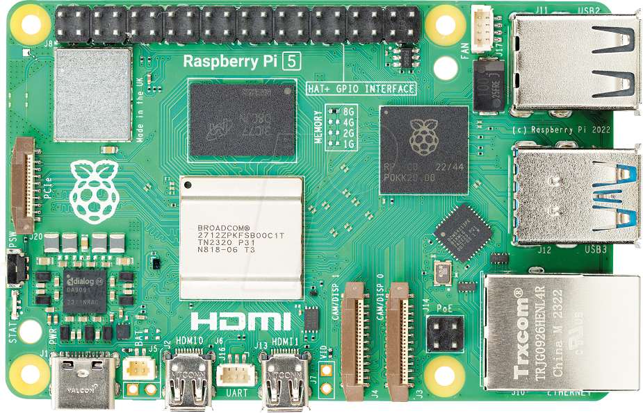 | PCIe | 2.0x1 (3.0 mode possible) interface for fast peripherals (requires separate M.2 HAT or other adapter) |